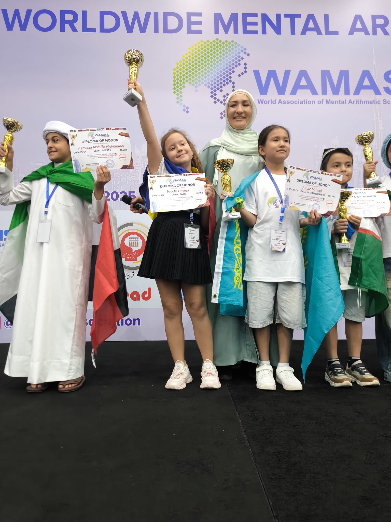 Cristea Nicole, elevă în clasa a III-a B la Liceul Teoretic „Callatis” din Mangalia, a obținut un rezultat remarcabil la Olimpiada Internațională de Aritmetică Mentală WAMAS, desfășurată pe 26 noiembrie 2025, în Dubai. Micuța matematiciană a fost distinsă cu premiul „Champion” — cea mai înaltă distincție a competiției — după ce a înregistrat cel mai mare punctaj la categoria ei de vârstă.